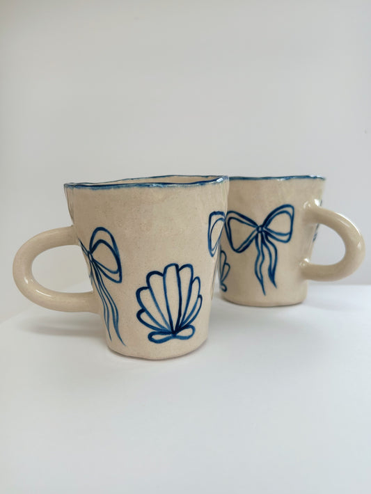 Bow + Seashell Handpinched Stoneware Mug