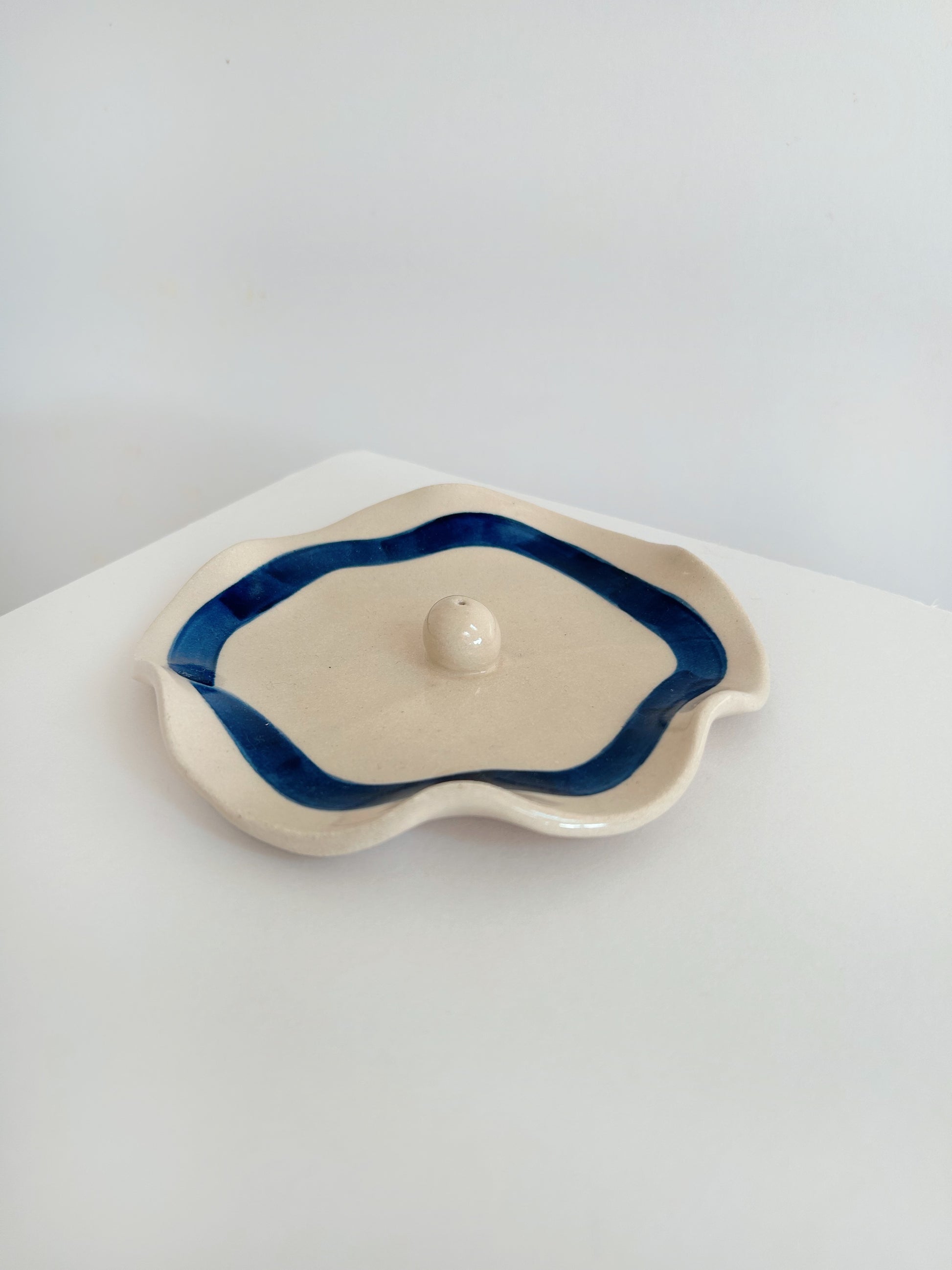 Wavy Ceramic incense holder made from stoneware clay, hand-painted and glazed.